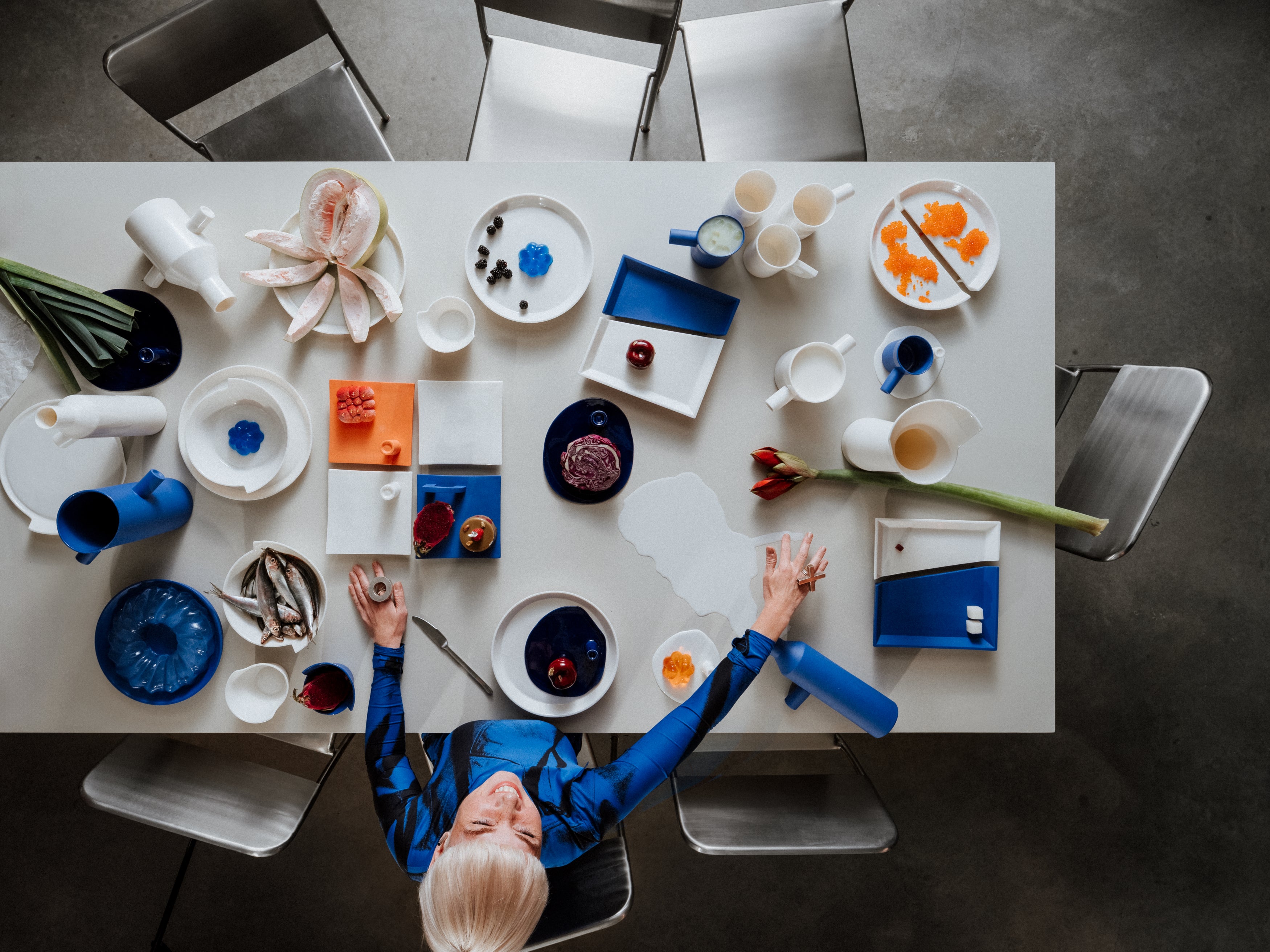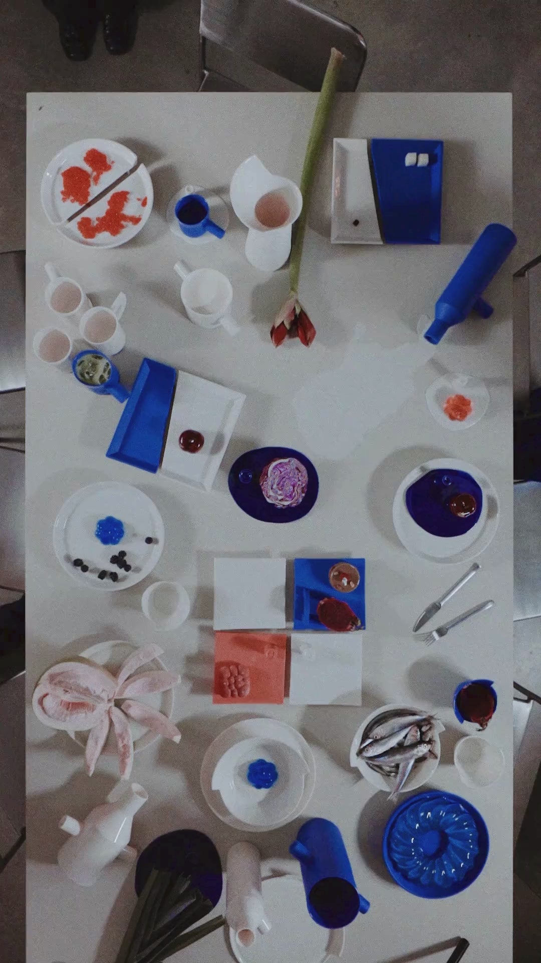 The architectural worldview of OAD founder Zane Tetere-Sulce inspires a bold collection of angular and half-glazed porcelain tableware.